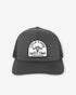 PVC Patch on Charcoal/Black trucker hat.